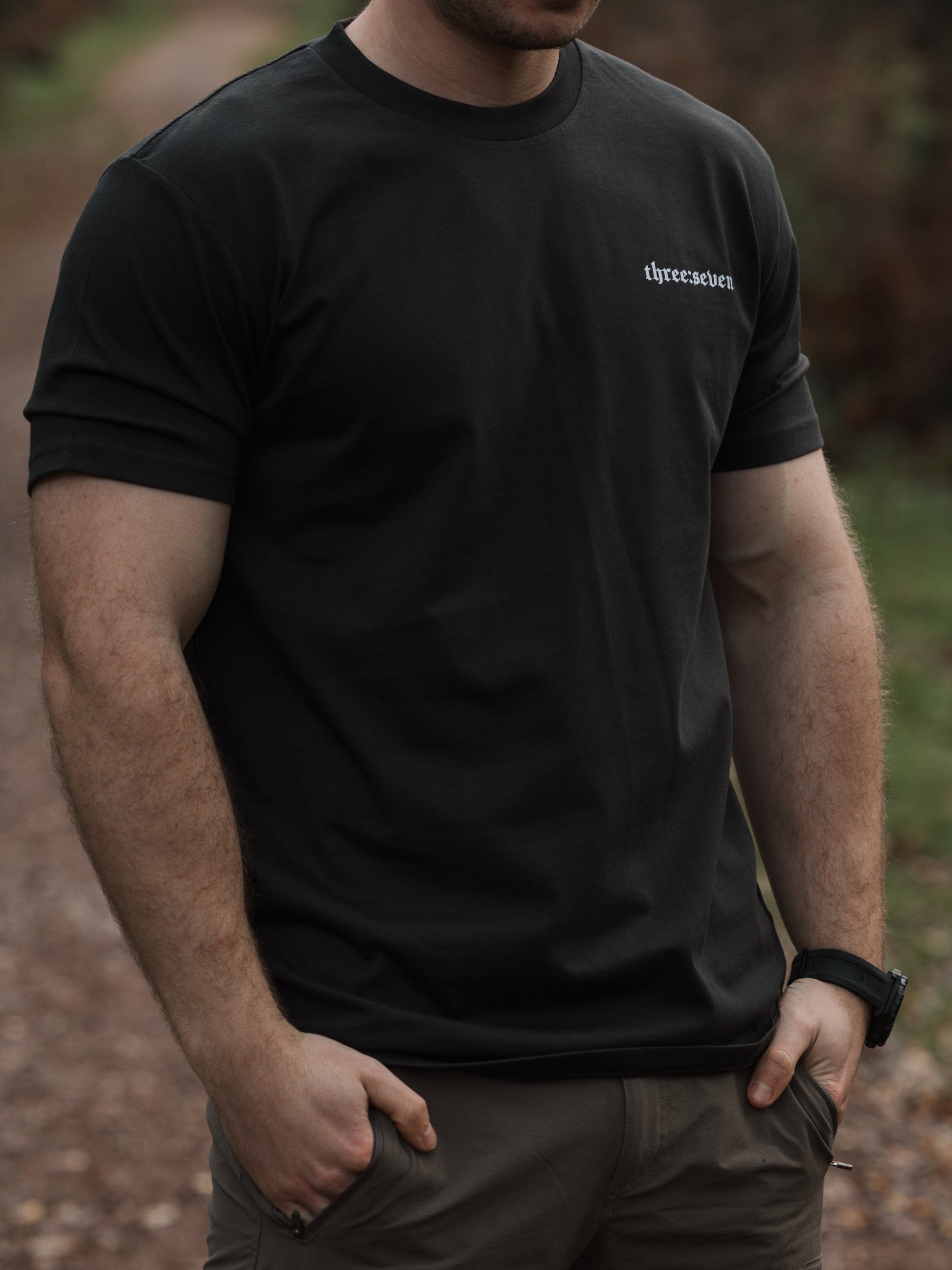 A huge reminder on this coal coloured tee.